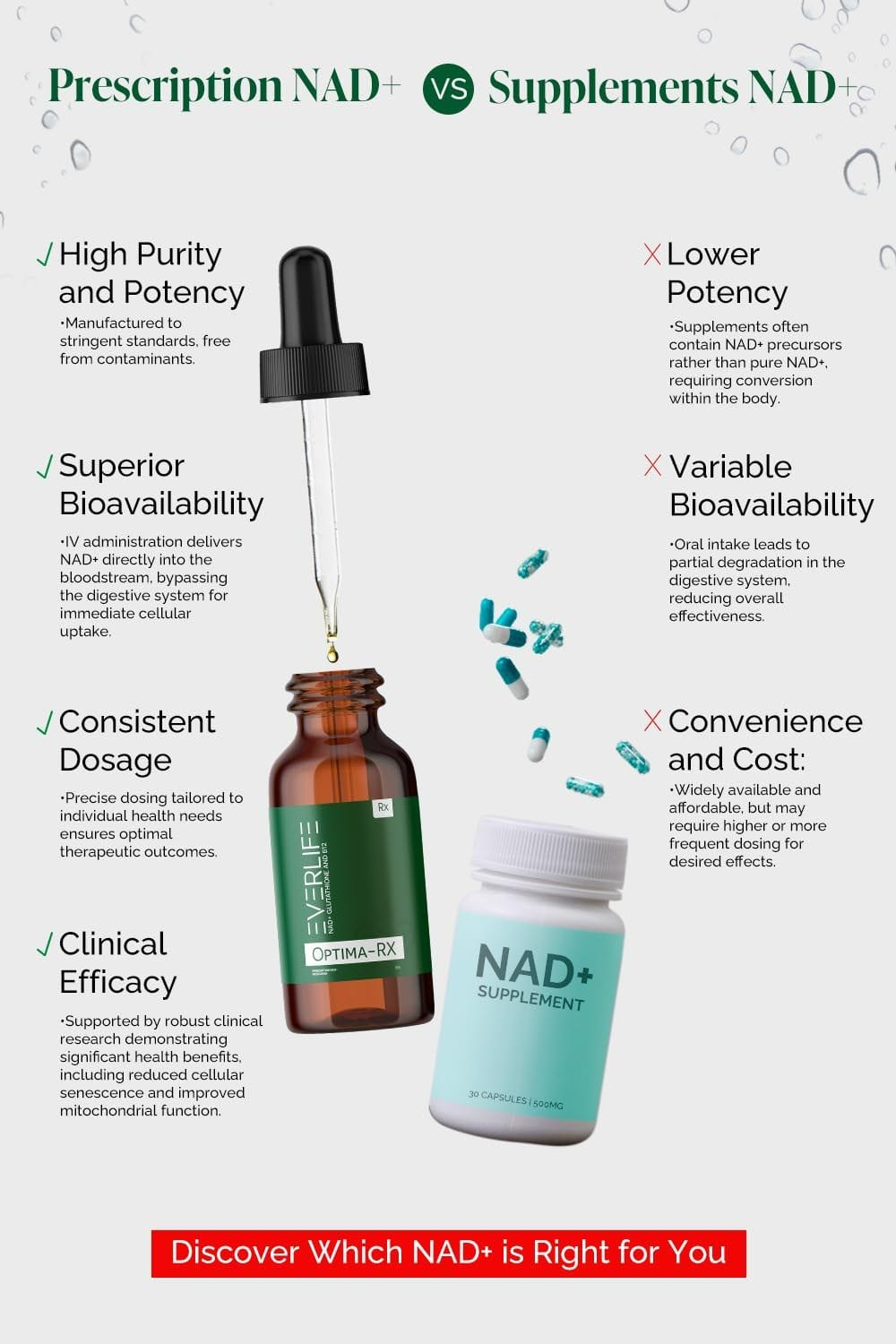 - Pharmaceutical-grade NAD+ involves highly purified NAD+ administered under clinical supervision, often through intravenous (IV) therapy. This method ensures maximum bioavailability and rapid uptake by cells.
