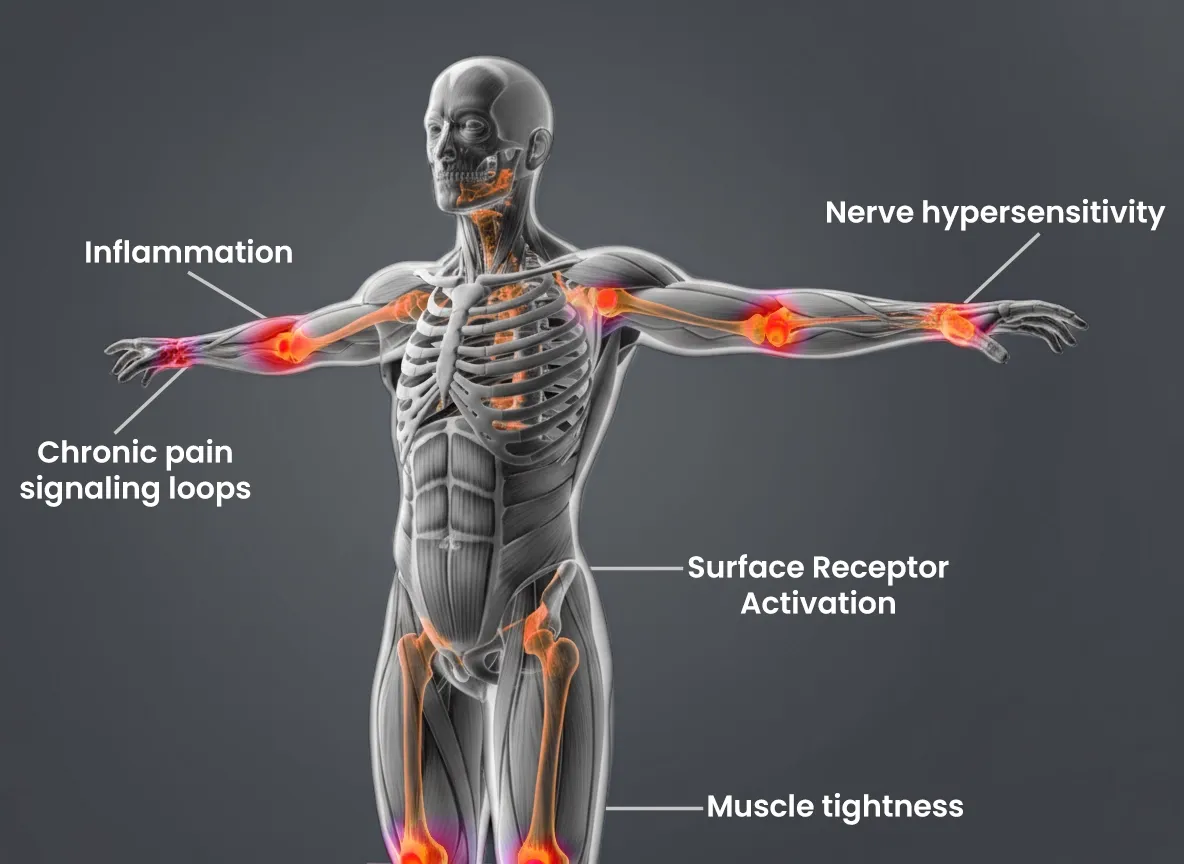 Helps address localized muscle tension and spasms that often perpetuate discomfort cycles.