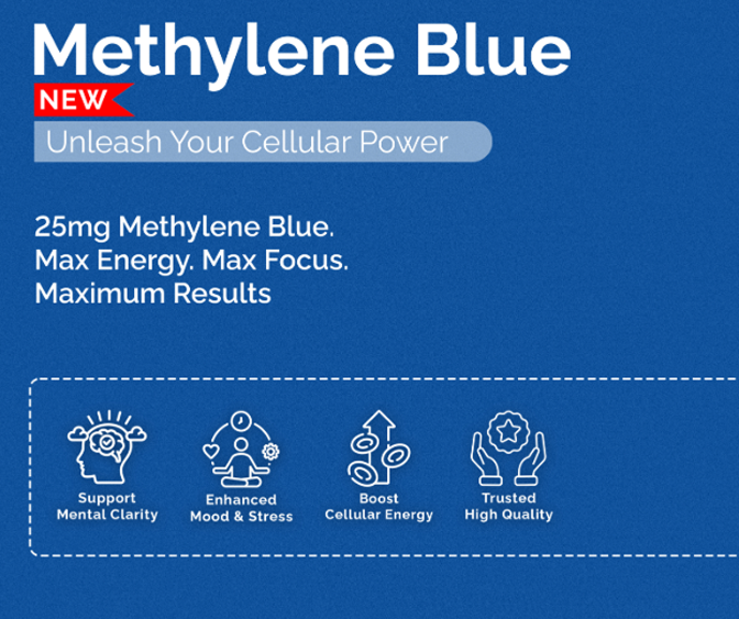 Experience the full potential of Methylene Blue with EverLife’s 25mg high-performance formula.