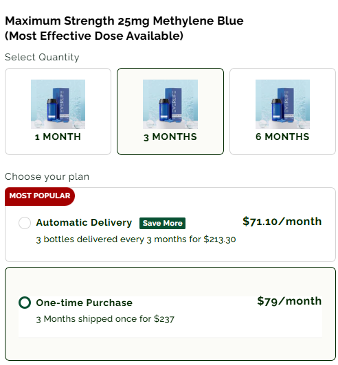 At EverLife, we believe in clinically inspired solutions to help you perform at your best. Unlike unregulated supplements with weak or untested doses, our high-potency 25mg Methylene Blue is crafted for maximum effectiveness, purity, and safety—rigorously tested for quality you can trust. Other brands offer low-dose, unverified formulas. EverLife delivers pharmaceutical-grade purity without the need for a prescription.