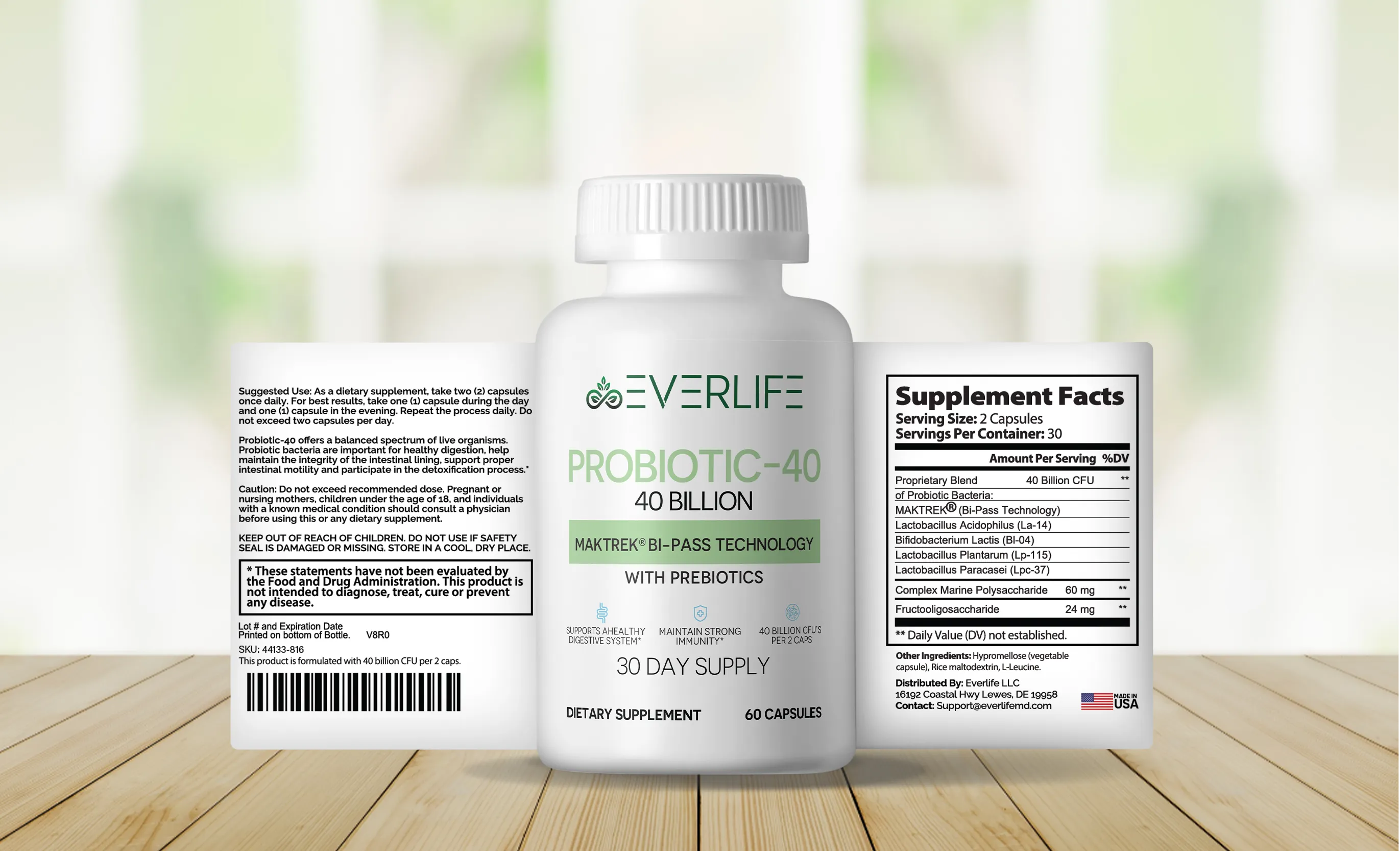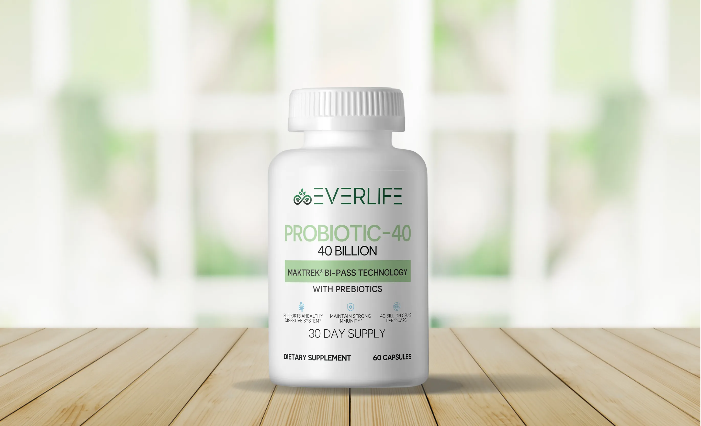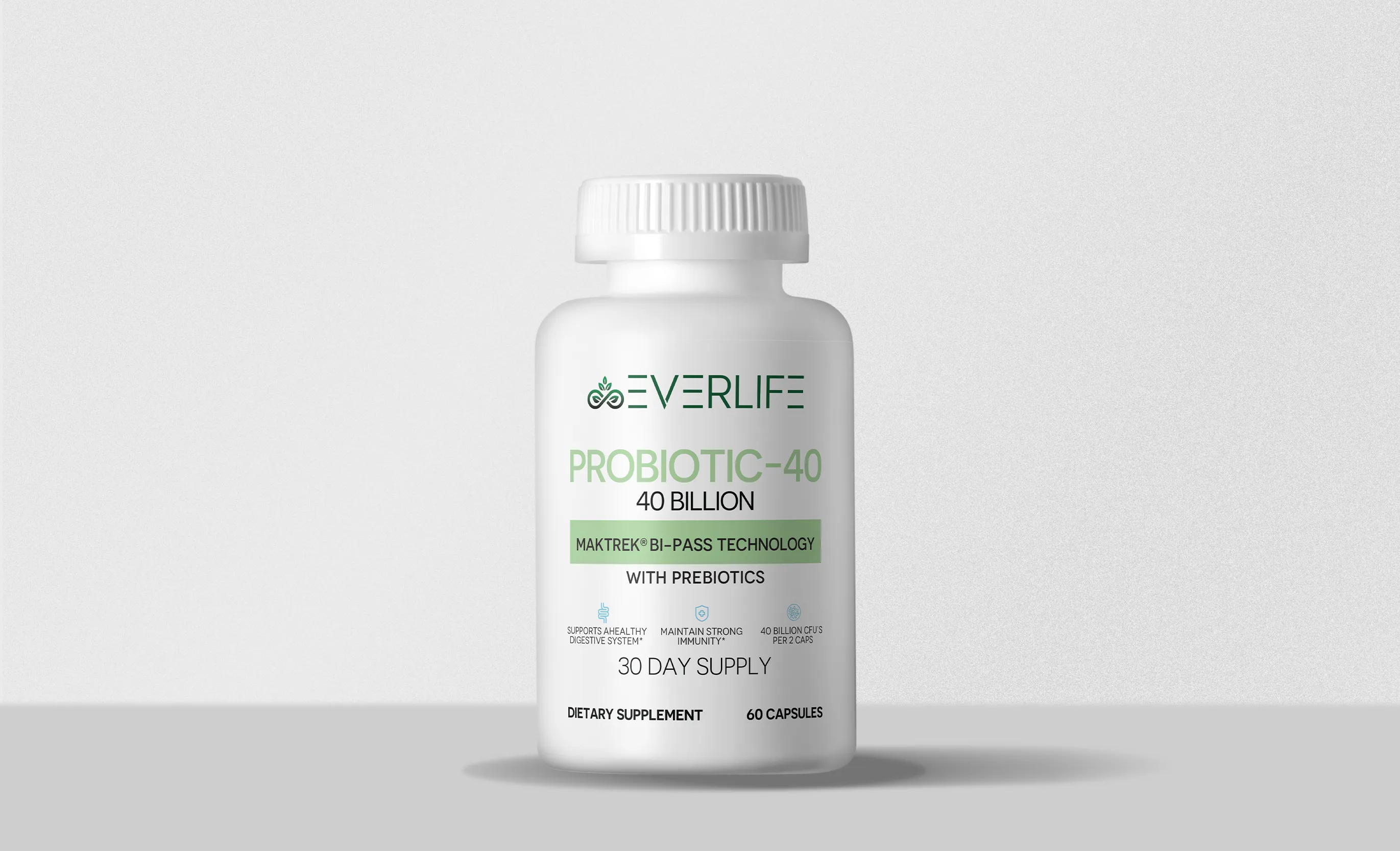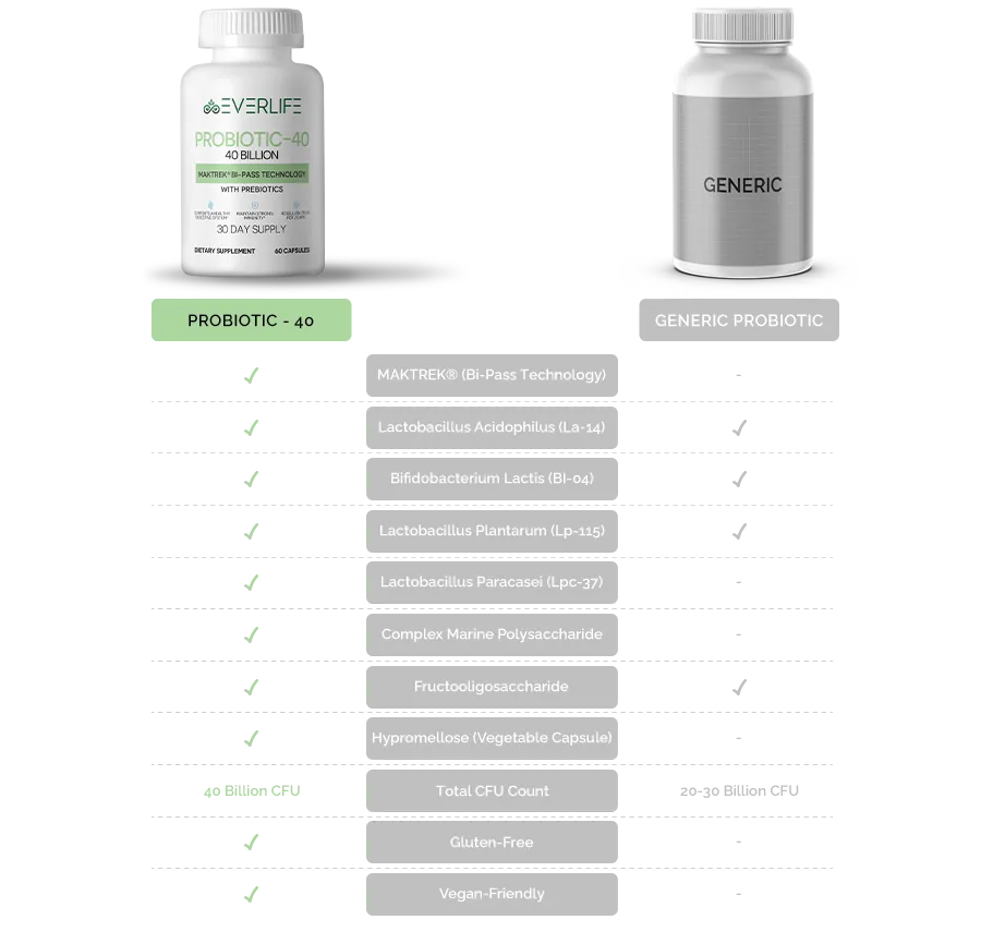 When choosing a supplement with probiotics, it’s essential to find one that can survive stomach acid and effectively reach the intestines. That’s why EverLife Probiotic-40 uses MAKTREK® Bi-Pass Technology, ensuring that the beneficial bacteria stay alive and active to provide maximum benefits.