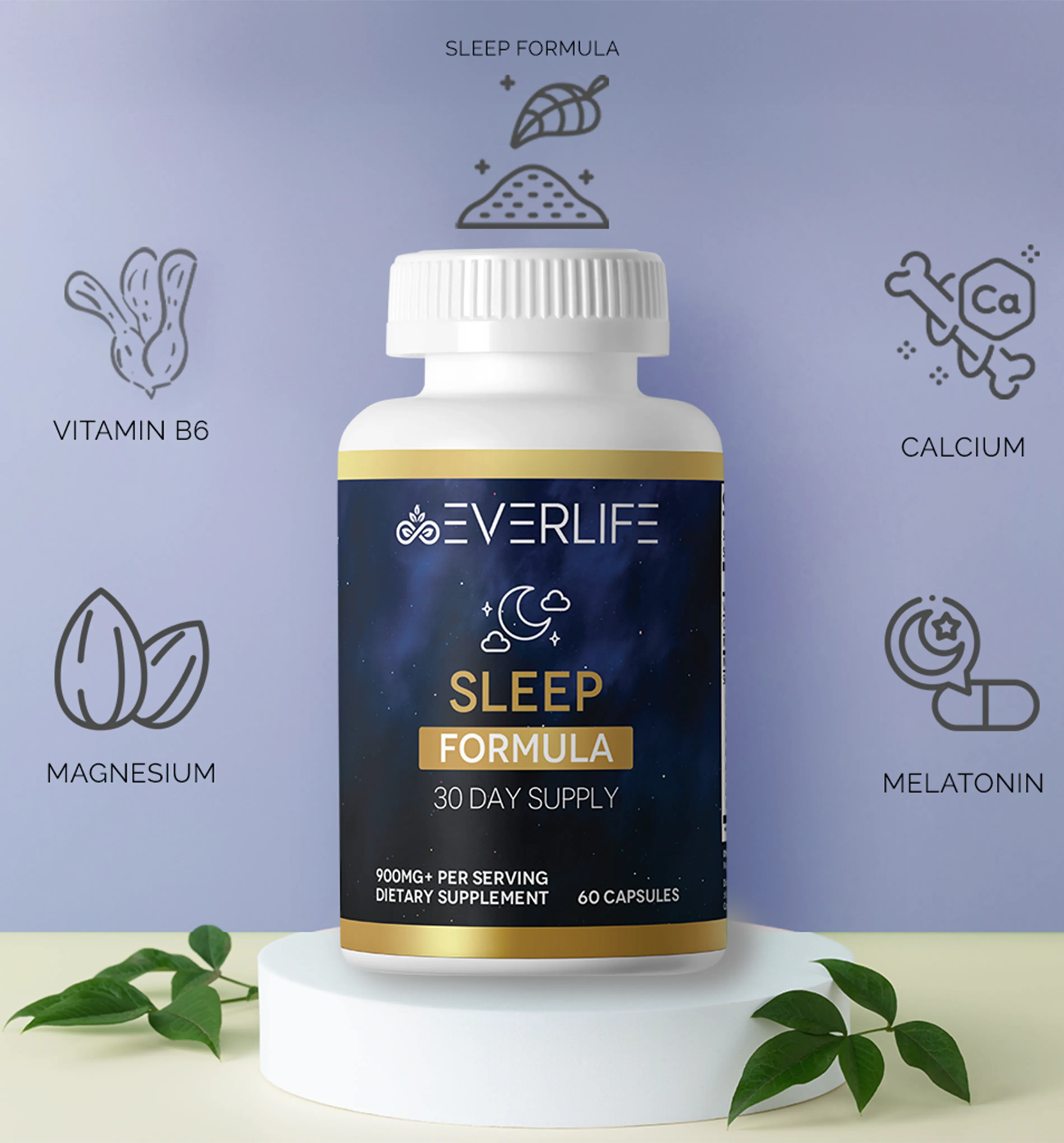 Drift into restful, rejuvenating sleep with EverLife Sleep Formula Supplement – a premium, science-backed formula designed to promote relaxation, improve sleep quality, and help you wake up refreshed. Crafted with a soothing blend of natural ingredients like Melatonin, L-Tryptophan, and Chamomile, this supplement supports your body’s natural sleep cycle, helping you unwind after a long day. Say goodbye to restless nights and hello to peaceful, restorative sleep with EverLife Sleep Formula – your trusted companion for better rest and brighter mornings.