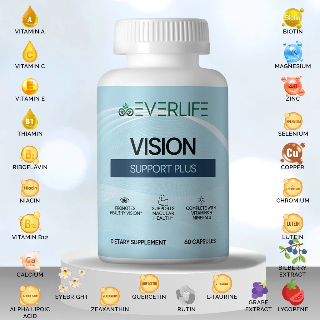 Your eyes work tirelessly every day, and maintaining optimal eye health is essential for a vibrant and active lifestyle. EverLife Vision Support Plus is a powerful dietary supplement designed to support healthy vision, protect against oxidative stress, and promote long-term eye health. With a premium blend of vitamins, minerals, and antioxidants, this advanced formula helps nourish your eyes from within, supporting macular health and optimal visual function.